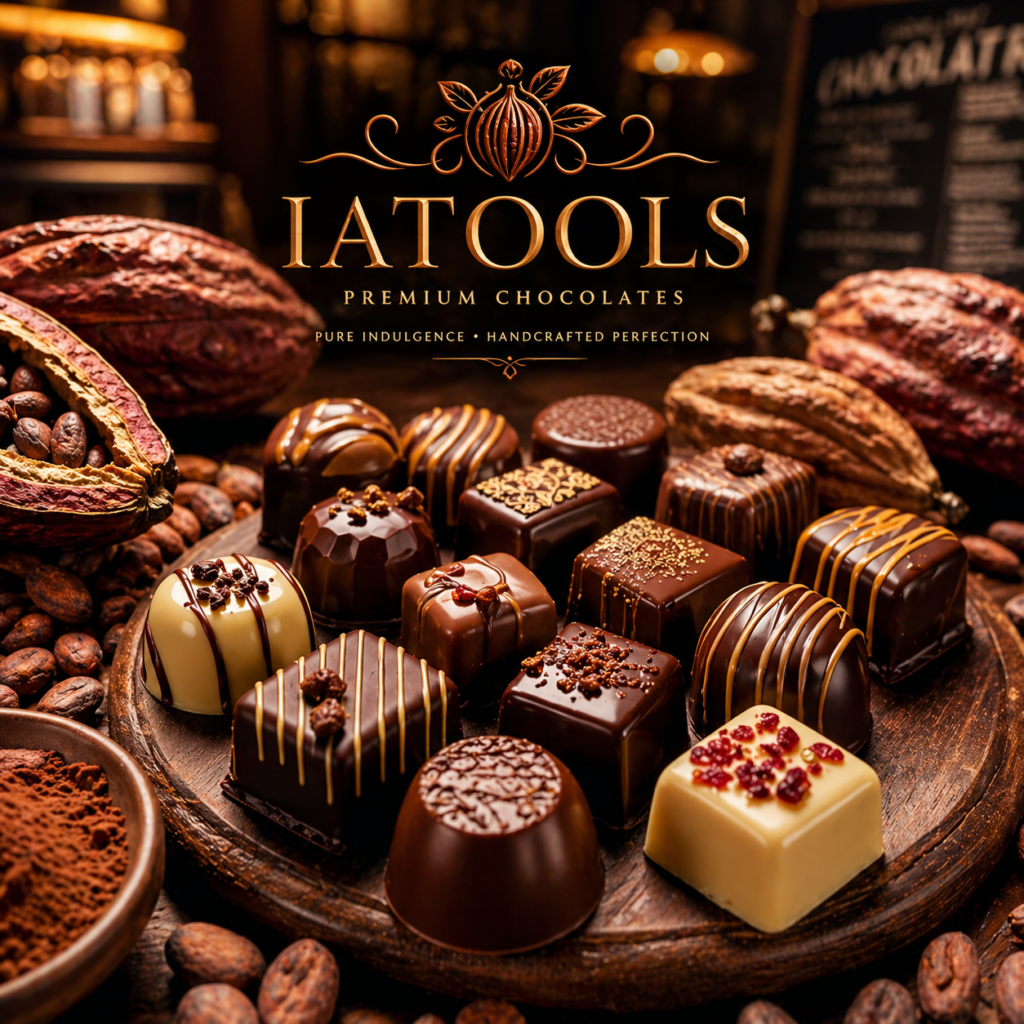 <li><strong>Quality</strong>: Rendered in stunning 8K resolution to capture intricate details and vibrant colors, making the chocolates irresistibly appealing. Use this text for the logo [IATOOLS]. create the image in 4:4 proportion and pixels.</li>